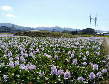 8、9月見頃のホテイアオイが、10月なのに広々と咲いていた。