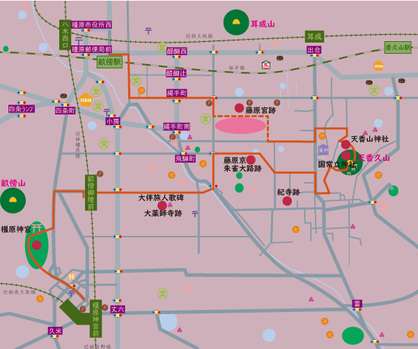 かつて橿原神宮などへの最寄り駅として駅舎内に貴賓室を備え、平成天皇や昭和天皇が利用されたこともあるそうな。