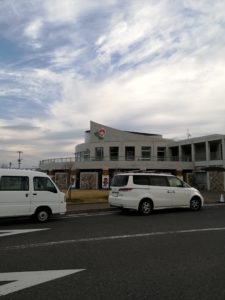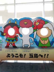 五島空港の横で、シャトルバスに乗り換えなければ行けない