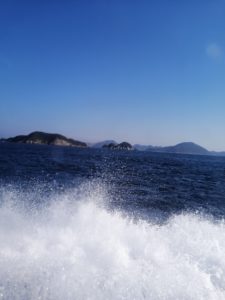 アゴ漁は2つの船で網を張りアゴを引き上げる。