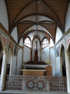 左右窓のステンドグラスは、最初に訪れた「フランシスコ・ザビエルを迎える時に付け加えられた物で、黒枠だが統一感はある。