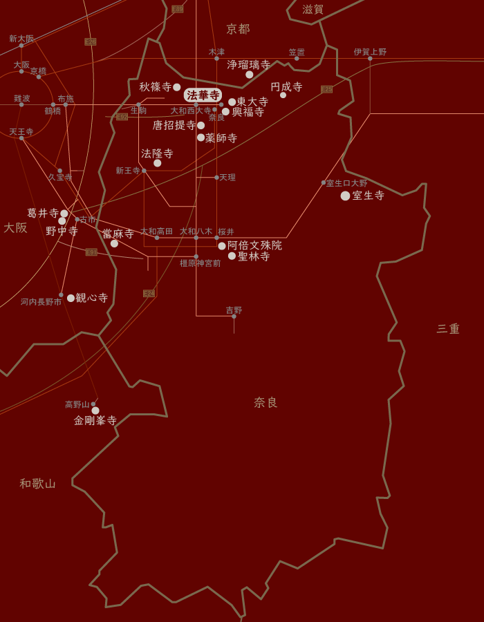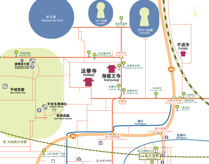 光明皇后(こうみょう こうごう)の皇后宮(藤原不比等の邸宅跡)の北東の隅に、飛鳥時代からあった土師(はぜ)氏の寺が残され『隅寺(すみでら)』とも呼ばれている。