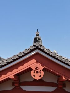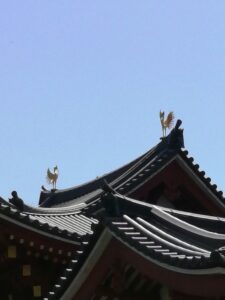 屋根の上の鳳凰は金ピカなのに、建物の朱色が茶色に近い?