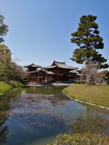 平等院が建つ宇治の地は、古来より奈良から京都へ向かう交通の途中で、平安時代には山水の景勝として貴族の別荘が建てられる地となった
