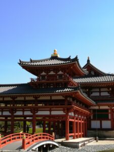 平等院ももとは、藤原道長が源重信(みなもとのしげのぶ)の未亡人より買い取った宇治殿(うじどの-宇治院)という別荘で、1052(永承7)年に息子の頼通が寺院へ改めたことに始まり、当初は大日如来を安置していたという
