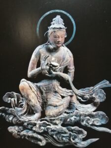 阿弥陀如来の光背(こうはい)にも、同じように雲に乗り 色んな楽器を奏でたり、踊ったり雲中供養菩薩像が12体いらっしゃった