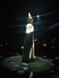 真ん中に、白いハンガリーの民族衣装を着た女性が、まるで人形のように立っている