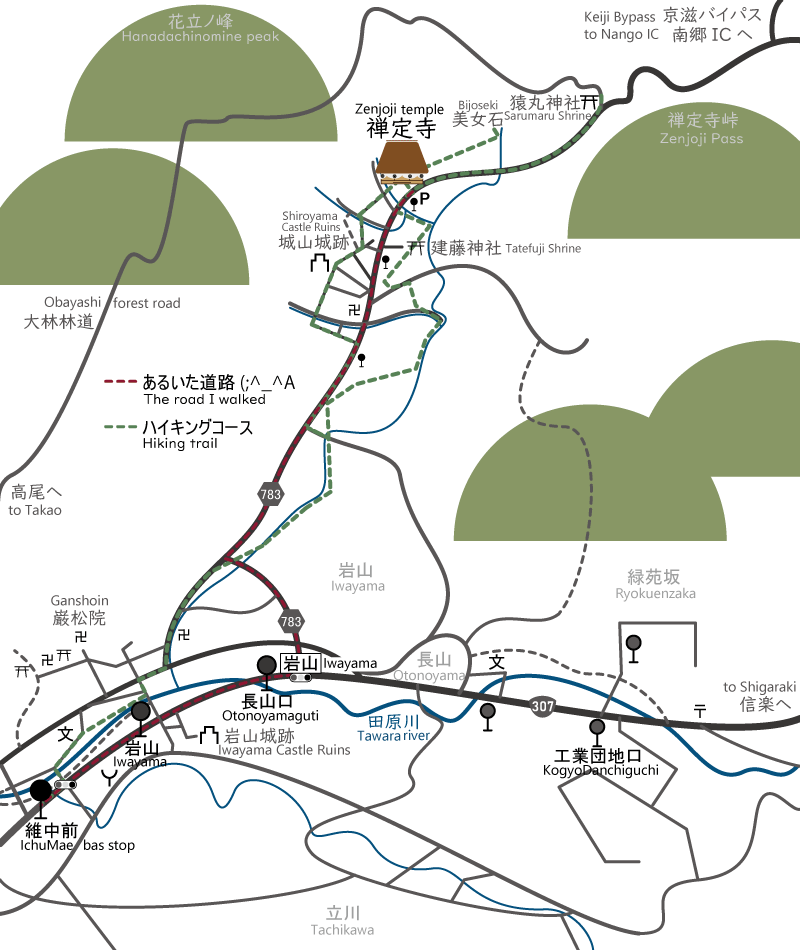 京阪宇治駅 🚏2番 🚌維中前行き(日中毎時24分発2021年)→ 約30分 →維中前 🚐コミュニティバス→禅定寺