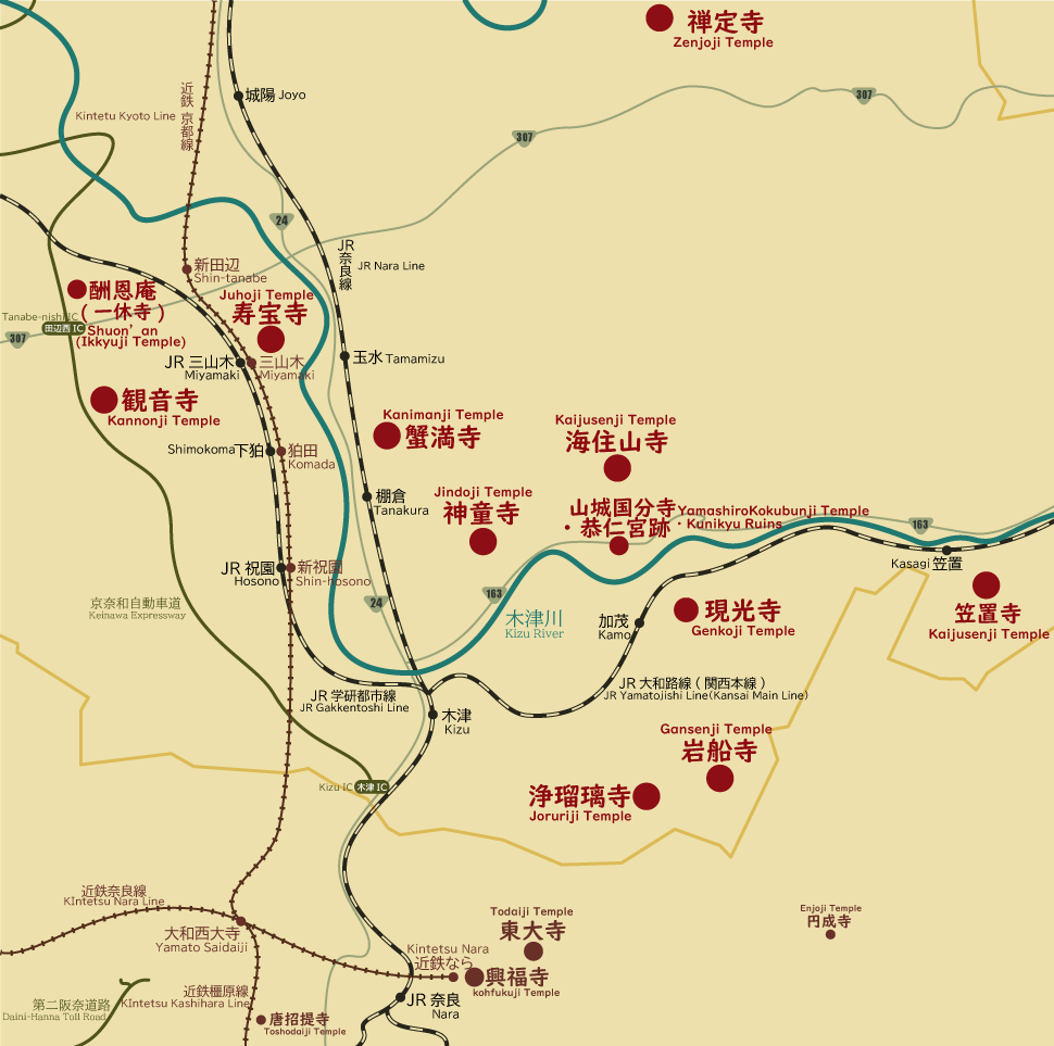 この地域を流する木津川は、古墳時代から水上交通路として使われ、恭仁京と平城京の建設にあたっては、木材の運搬にきわめて重要だった