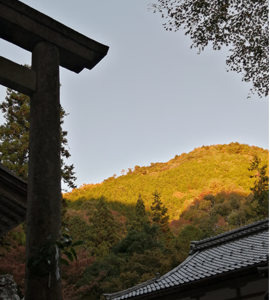 下を流れる谷川が結界(けっかい)となり、これをさかいに手前が俗世界(ぞくせかい)、向こう側が神域(しんいき)となります。