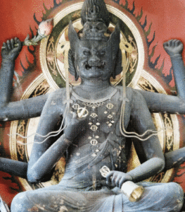 武器 金剛杵(こんごうしょ)を持つ、振り上げた右手が今にも動きだしそう